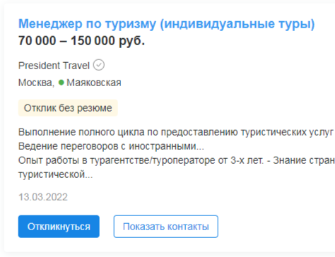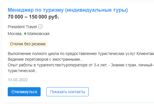 В каких контактах заинтересованы пользователи Джоб Тревел